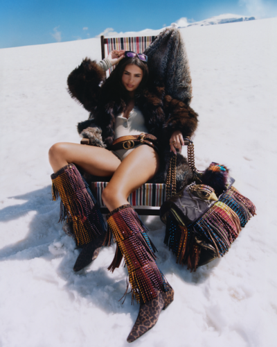 Πρώτα από όλα, η νέα συλλογή Kurt Geiger Fall Winter 2025 με τίτλο «Cold Season, Hot Style» είναι ένας ύμνος στο πολυτελές αλλά fun στυλ. Με τη Laura Coulson πίσω από τον φακό και τη λαμπερή Emily Ratajkowski ως πρόσωπο της καμπάνιας, το σκηνικό ταξιδεύει στις Άλπεις – εκεί όπου το après-ski συναντά την urban αισθητική του Λονδίνου. Επίσης, οι τσάντες, τα παπούτσια και τα αξεσουάρ αποτυπώνουν την τολμηρή και παιχνιδιάρικη προσωπικότητα του brand: κρύσταλλα, faux fur και έντονες λεπτομέρειες που κάνουν κάθε outfit να δείχνει couture χωρίς προσπάθεια.