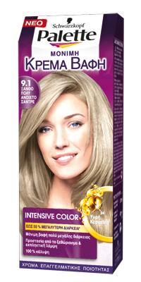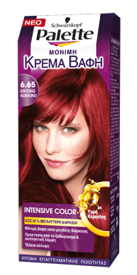 Όποια κι αν είναι η απόχρωση της προτίμησής σας με τη νέα Palette Intensive Color μόνιμη κρέμα βαφή, με τις 22 συνολικά αποχρώσεις έχετε μια ευρεία γκάμα επιλογών. Η καινοτομία της Palette Intensive Color κρύβεται στη νέα της φόρμουλα! Περιέχει Υγρή Κερατίνη για έως 50% περισσότερη ένταση χρώματος σε σχέση με την προηγούμενη φόρμουλα της Palette, τέλεια προστασία από το ξεθώριασμα και εκπληκτική λάμψη! Η νέα σύστασή της εισχωρεί στο εσωτερικό της τρίχας και σφραγίζει το χρώμα, για ένα εκπληκτικό αποτέλεσμα και τέλεια κάλυψη στα λευκά!