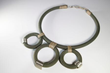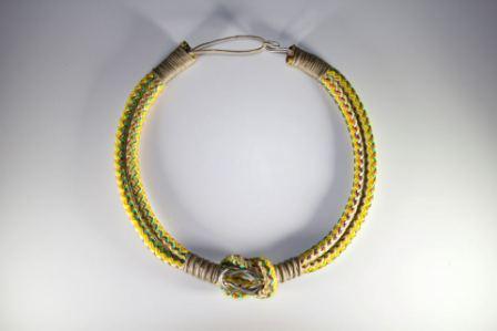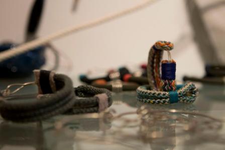 Τα υλικά που χρησιμοποιεί κυρίως είναι σχοινί, μέταλλο, σύρμα και κηρόσπαγγος. Η Έλενα «χτίζει» τα σχέδια της γύρω από το στοιχείο του σχοινιού.