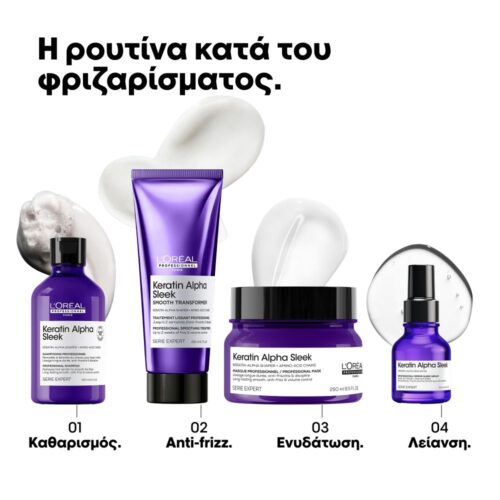 Η σειρά Keratin Alpha Sleek βασίζεται σε μια απλή αλλά μελετημένη ρουτίνα:
