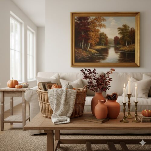 Αν θέλεις να πας τη διακόσμηση ένα βήμα παραπέρα, άλλαξε τα έργα τέχνης σου. Ο designer Justin DiPiero προτείνει να προτιμήσεις πίνακες με μπορντό, κεχριμπαρένιες ή γκρι αποχρώσεις — θα φέρουν αμέσως τη φθινοπωρινή αίσθηση στο σαλόνι ή την τραπεζαρία σου.