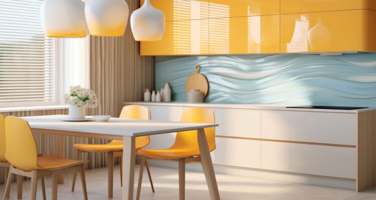 Αν η κουζίνα σας κινείται σε λευκούς ή γήινους τόνους και δεν επιθυμείτε ριζικές αλλαγές, μια διακριτική δόση χρώματος μπορεί να είναι ακριβώς αυτό που χρειάζεστε. Φανταστείτε ένα butter yellow στα ράφια και τα ντουλάπια, πάνω σε λευκούς τοίχους και ένα ξύλινο νησίδα στον πάγκο. Δεν χρειάζεται να είναι πολύπλοκο. Το τρίτο χρώμα μπορεί να δώσει πνοή χωρίς να είναι έντονο, ενώ το ξύλο λειτουργεί και πάλι ως «διαμεσολαβητής» που ενώνει αρμονικά τα πάντα.