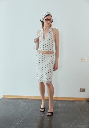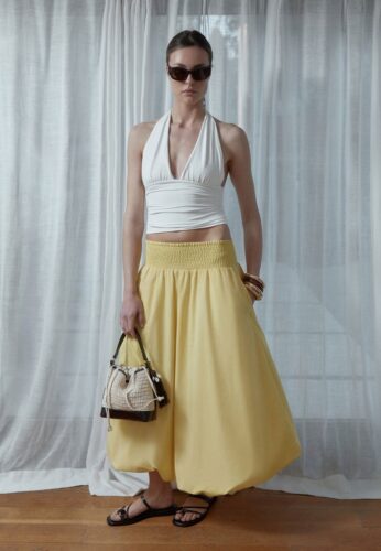 Η νέα συλλογή μεταφέρει αυτή τη φιλοσοφία στην γκαρνταρόμπα μας μέσα από ενδιαφέροντες συνδυασμούς και υφές. Τα παντελόνια σε balloon γραμμή και οι ρευστές φούστες προσφέρουν μια ανάλαφρη αίσθηση, ενώ τα δομημένα tops και οι halter γραμμές χαρίζουν σχήμα και δυναμισμό. Το χαλαρό denim συναντά τα κομψά ριγέ σετ, δημιουργώντας ένα στυλ που ισορροπεί ανάμεσα στο προσεγμένο και το αυθόρμητο. Είναι μια πρόσκληση να πειραματιστούμε με την εμφάνισή μας χωρίς περιορισμούς.