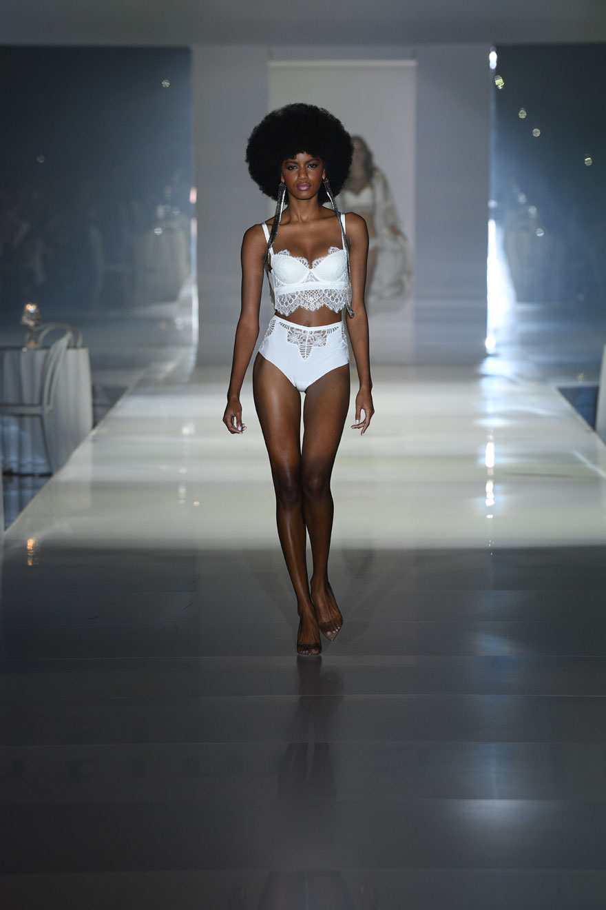 Τα μάτια των γυναικών έλαμψαν από έρωτα όταν αντίκρισαν τα δαντελένια σουτιέν και σλιπ, τα tone – on – tone fleurie balconette bras, τα δαντελένια κορμάκια bodies, τα bra tops με ελαστική υφή αλλά και prints: λεοπάρ και μοτίβα πύθωνα σε τούλι, glen plaid καρό σχέδια και πουά. Για το βράδυ, dévoré βελούδο με κρόσσια, δαντέλα boudoir-style και εσώρουχα με λάμψεις από χρυσό. Και οι άνδρες της βραδιάς δεν έμειναν παραπονεμένοι, αφού πέρα από τα εντυπωσιακά μοντέλα με τα ατελείωτα πόδια, η Intimissimi παρουσίασε και κλασικές πιτζάμες σε μονόχρωμα χρώματα ή σε κομψά μοτίβα, άνετες ρόμπες και ιδιαίτερα παντελόνια, σχεδιασμένα για να φορεθούν στο σπίτι και να καλύψουν κάθε ανάγκη – όλα σε μεγάλη ποικιλία μεγεθών, υφών και πλέξεων. Και φυσικά, διαχρονικά και μοντέρνα κομψά πλεκτά αλλά και τα απαραίτητα boxer που πλέον θεωρούνται all-time iconic κομμάτια της Intimissimi Uomo.