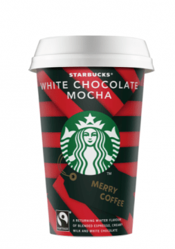 Με το Starbucks White Chocolate Mocha η χαρά των Χριστουγέννων μπορεί να είναι στο χέρι σας όποτε θέλετε, όπου και αν βρίσκεστε, πάντα με ασφάλεια! Ανακαλύψτε το στην εορταστική συσκευασία σε επιλεγμένα σημεία πώλησης (super market, mini market και περίπτερα) σε όλη την Ελλάδα.