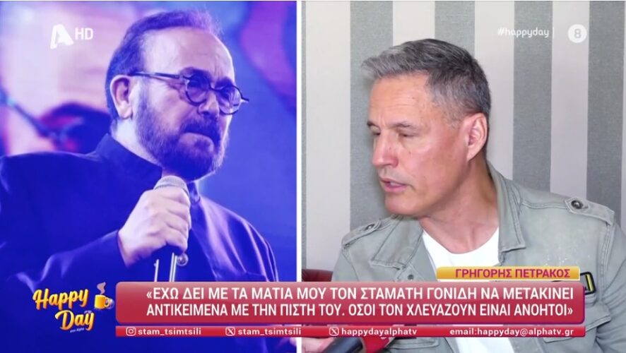 Ο Γρηγόρης Πετράκος έκανε μια άκρως ενδιαφέρουσα και… πολυσυζητημένη εμφάνιση στην εκπομπή «Happy Day» σήμερα, μιλώντας για πολλά, από τη μουσική του μέχρι τις απόψεις του για τις νέες ταυτότητες και την κλιματική αλλαγή. Ωστόσο, αυτό που τράβηξε τα βλέμματα ήταν η αναφορά του στον Σταμάτη Γονίδη και στις «μεταφυσικές του ικανότητες».