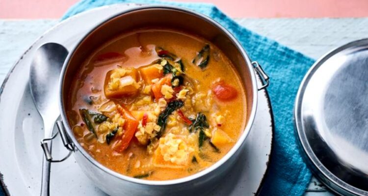 Αν ψάχνεις ένα χορταστικό, αρωματικό και γεμάτο χρώμα πιάτο που θα σε ταξιδέψει με τις γεύσεις του, αυτό η σούπα είναι ακριβώς ό,τι χρειάζεσαι! Συνδυάζει φακές, γλυκοπατάτα, πιπεριά και σπανάκι μέσα σε μια πλούσια, κρεμώδη σάλτσα καρύδας.