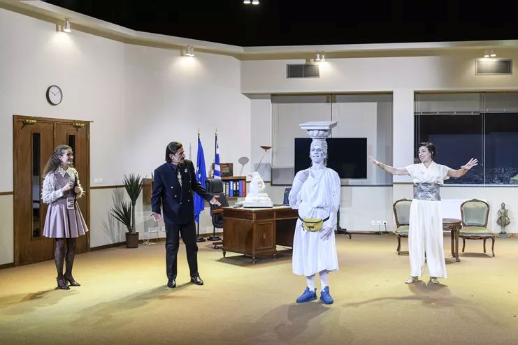 Στο σπαρταριστό έργο του Γ. Καπουτζίδη που είναι αφιερωμένο στη μεγαλειώδη ελληνική ικανότητα να μπλέκουμε σε κωμικοτραγικές καταστάσεις, η περίφημη Καρυάτιδα επιστρέφει από το Βρετανικό Μουσείο με μια υποδοχή «σκέτη κωμωδία». Σαν άλλη αγαπημένη φίλη, θεία, χαμένη ξαδέρφη από το εξωτερικό, την περιμένει όλη η χώρα με τεράστια προσμονή. Η υποδοχή της, όμως, δεν θα είναι όπως τη φανταστήκαμε, όπως τη σχεδιάσαμε, όπως τη ονειρευτήκαμε.