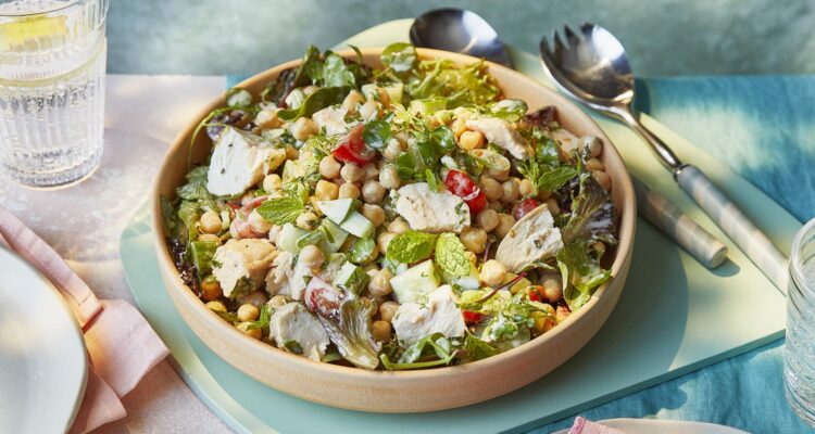 Μια δροσερή, χορταστική και πολύ εύκολη συνταγή που συνδυάζει το ζουμερό κοτόπουλο με τα ρεβίθια, τα φρέσκα μυρωδικά και τη λεμονάτη γεύση. Είναι ιδανική για ελαφρύ μεσημεριανό ή βραδινό, αλλά και για τάπερ την επόμενη μέρα.