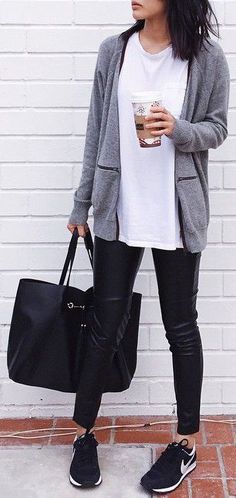 1. Για ένα πιο καθημερινό street style, προτίμησε το με ένα basic μπλουζάκι και μακριά πλεκτή ζακέτα.