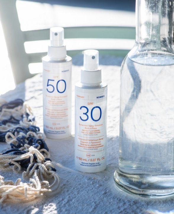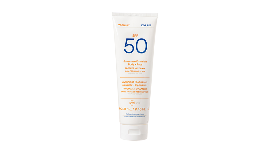 Εκτός από το «θαυματουργό» γιαούρτι, τα προϊόντα περιέχουν πανθενόλη, βιταμίνη Ε και φυτικά έλαια, συνθέσεις ιδανικές για το ευαίσθητο δέρμα, για να είναι ενυδατωμένο και προστατευμένο από τη φωτογήρανση. Προσφέρουν ευρύ φάσμα προστασίας UVA-UVB και χαρίζουν ενεργή ενυδάτωση με διάρκεια. Τα αντηλιακά KORRES Γιαούρτι έχουν αναπτυχθεί χωρίς σιλικόνες που είναι μη-βιοδιασπώμενες και χωρίς φίλτρα ενδεχομένως επιβλαβή για το θαλάσσιο περιβάλλον. Μια σειρά που προστατεύει όχι μόνο το δέρμα μας αλλά και το περιβάλλον.