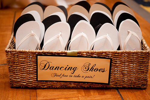 Ψηλοτάκουνα δεν φορά μόνο η νύφη αλλά και οι φίλες της που θα τη συνοδεύουν για ώρες στα χορευτικά της! Έτσι, κάνε μια καλή πράξη και εξασφάλισε ένα καλάθι με μαλακές μπαλαρίνες ή σαγιονάρες (αν είναι καλοκαιρινός γάμος) έτσι ώστε να σώσεις την καλεσμένη που δεν ήταν τόσο προνοητική, όσο εσύ 😉