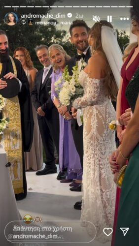 Όσο για το παραδοσιακό «πάτημα του ποδιού», η νύφη είπε με χιούμορ: «Πάτησα το πόδι του Γιώργου, πολύ γλυκά». Ο τραγουδιστής, από την άλλη, απάντησε γελώντας: «Όχι και γλυκά! Θέλει τσαγκάρη το παπούτσι». Και η Ανδρομάχη, χωρίς να χάσει το κέφι της, έκλεισε λέγοντας: «Θα το πάμε ρε Γιώργο, αν χρειάζεται τσαγκάρη. Εγώ θα το πάω».