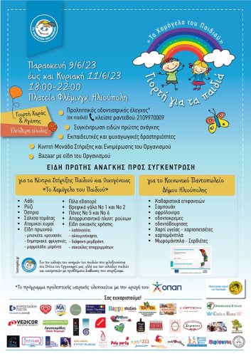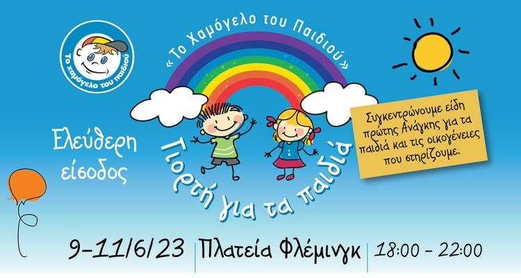 «Το Χαμόγελο του Παιδιού» σας προσκαλεί στην Καλοκαιρινή Γιορτή για τα παιδιά στην Πλατεία Φλέμινγκ, από την Παρασκευή 9 Ιουνίου έως και την Κυριακή 11 Ιουνίου και ώρες 18:00 – 22:00, με ελεύθερη είσοδο και με την υποστήριξη του Δήμου Ηλιούπολης.