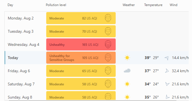 Σύμφωνα με την ιστοσελίδα iqair.com/greece/attica/athens την οποία μπορεί κανείς να συμβουλεύεται για την ποιότητα του αέρα, σήμερα η ατμόσφαιρα συνεχίζει να είναι επικίνδυνη, ειδικά για ευπαθείς ομάδες, αν και η κατάσταση έχει βελτιωθεί ελαφρώς από την χτεσινή.