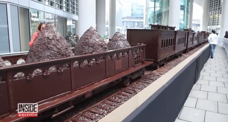 Το νέο ρεκόρ αφορά ένα τεράστιο σοκολατένιο τρένο μήκους 55,27 μέτρων. Η κατασκευή περιλάμβανε μία vintage ατμομηχανή και 22 βαγόνια, όλα φτιαγμένα από σοκολάτα, με κάθε βαγόνι να αγγίζει περίπου τα 160 κιλά. Ναι, σωστά διάβασες. Εδώ δεν μιλάμε για ένα χαριτωμένο γλυκό βιτρίνας, αλλά για ολόκληρη σοκολατένια εγκατάσταση.