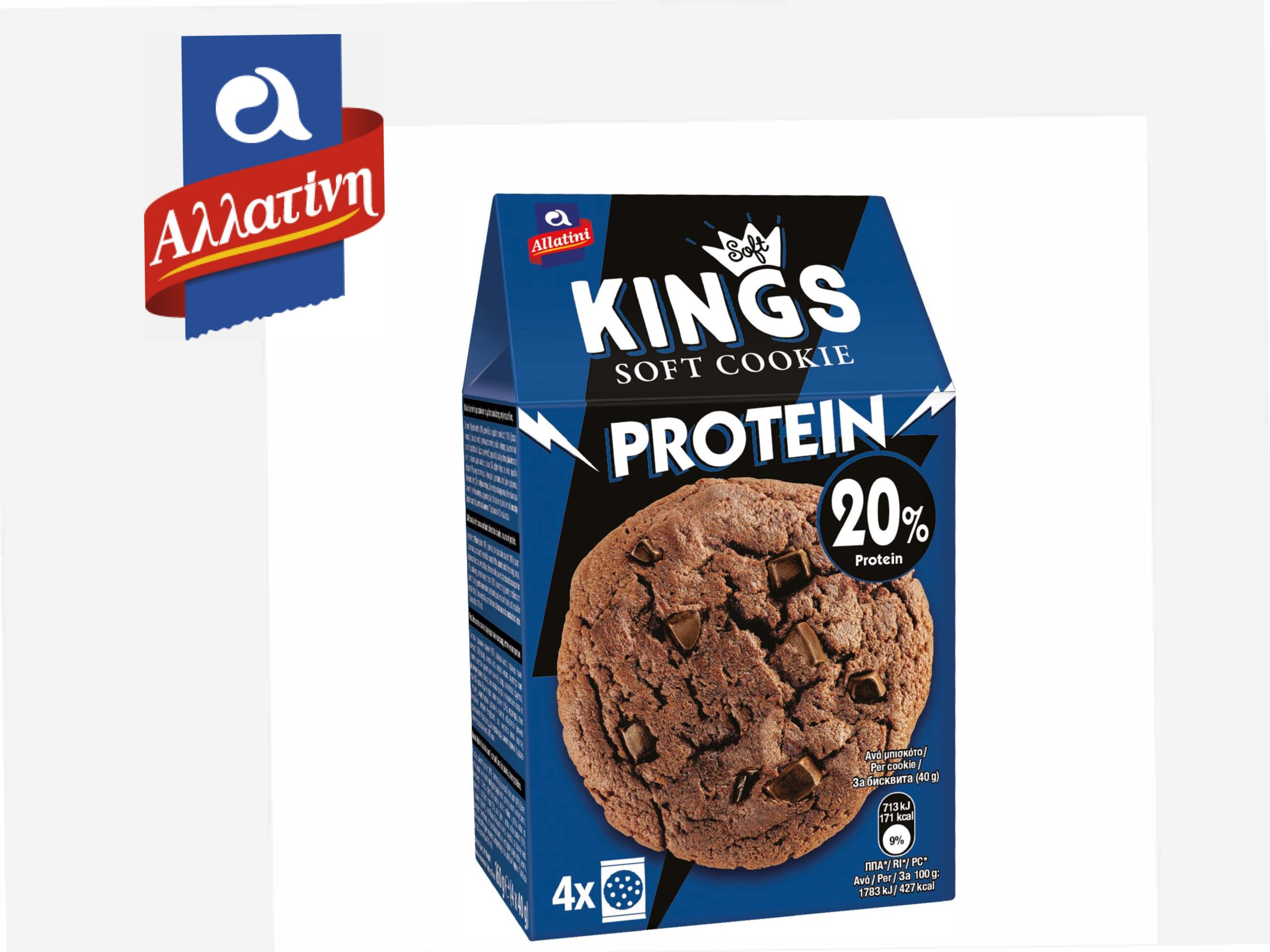 Σήμερα, η οικογένεια Αλλατίνη Soft Kings εξελίσσεται με τη νέα της προσθήκη: το Soft Kings Protein – μία ακόμη ολοκληρωμένη πρόταση της σειράς, που ακολουθεί την ανερχόμενη τάση για ισορροπημένη διατροφή και αυξημένη πρόσληψη πρωτεΐνης και ανταποκρίνεται στην ανάγκη των καταναλωτών για επιλογές με οφέλη για την υγεία και την ευεξία. Το νέο Soft Kings Protein είναι η απόλαυση γλύκισμα που προσφέρει ενέργεια, τόνωση και ικανοποίηση σε κάθε στιγμή της ημέρας. Ένα μπισκότο που ενώνει την πρωτεΐνη με την πλούσια γεύση και ακαταμάχητα μαλακή υφή των Soft Kings για στιγμές που χρειάζεσαι κάτι παραπάνω από ένα απλό σνακ. Σχεδιασμένο για έναν σύγχρονο τρόπο ζωής, αποτελεί μια απολαυστική και ποιοτική επιλογή, ενώ διατίθεται στην πρακτική συσκευασία των Soft Kings, για να το παίρνεις εύκολα παντού μαζί σου.