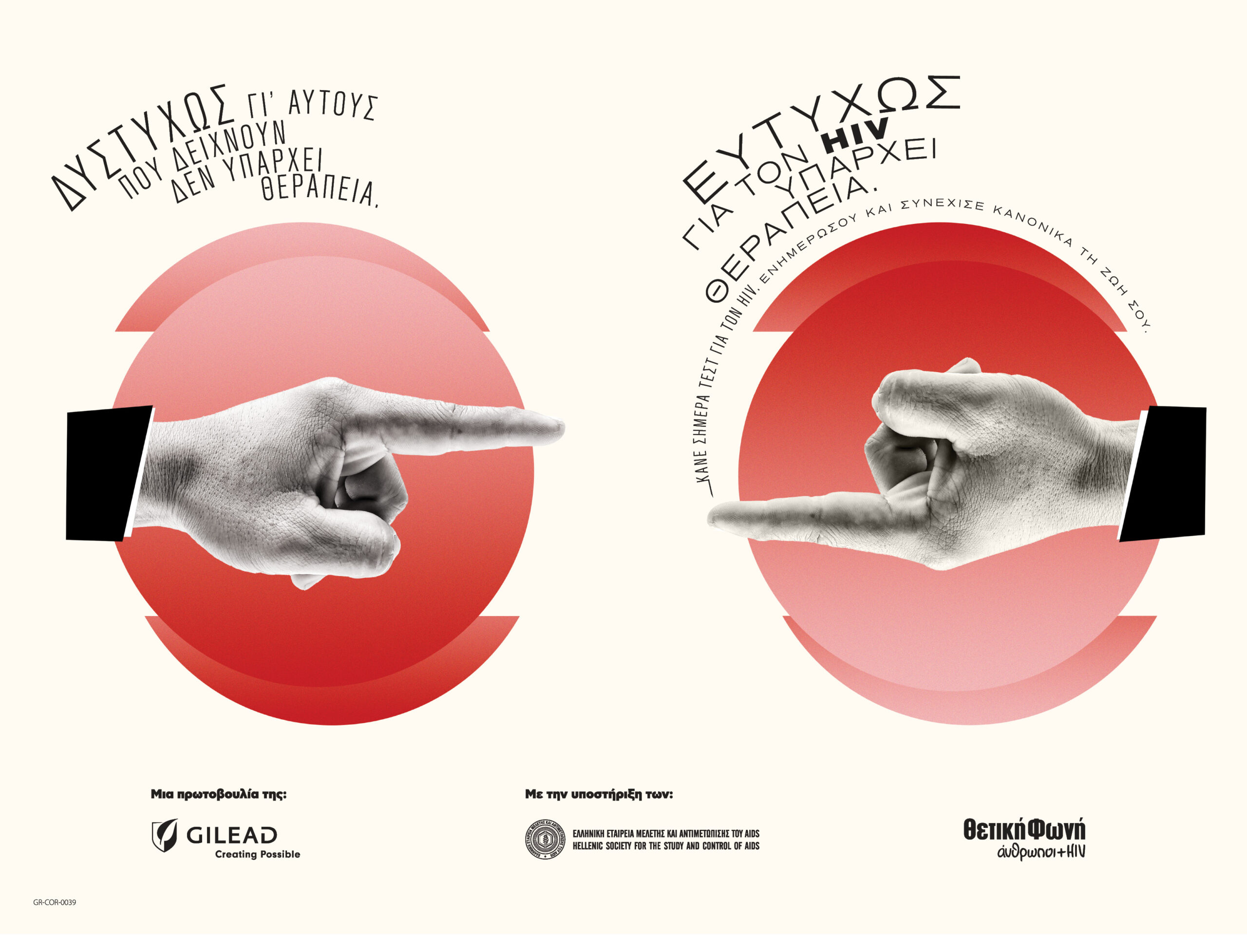Με το αιχμηρό μήνυμα «Δυστυχώς γι’ αυτούς που δείχνουν, δεν υπάρχει θεραπεία. Ευτυχώς για τον HIV υπάρχει θεραπεία», η Gilead Sciences Ελλάδας παρουσιάζει εκ νέου μια καμπάνια που στοχεύει να αλλάξει όχι μόνο τον τρόπο που μιλάμε για τον HIV, αλλά και τον τρόπο που τον αντιμετωπίζουμε ως κοινωνία. Η καμπάνια μετατοπίζει το κέντρο βάρους: αντί να επικεντρώνεται στα άτομα που ζουν με τον ιό, στρέφει την προσοχή σε εκείνους «που δείχνουν με το δάχτυλο», σε όσους εξακολουθούν να στιγματίζουν, υπενθυμίζοντας ότι το πραγματικό εμπόδιο δεν είναι ο HIV αλλά οι προκαταλήψεις γύρω του.