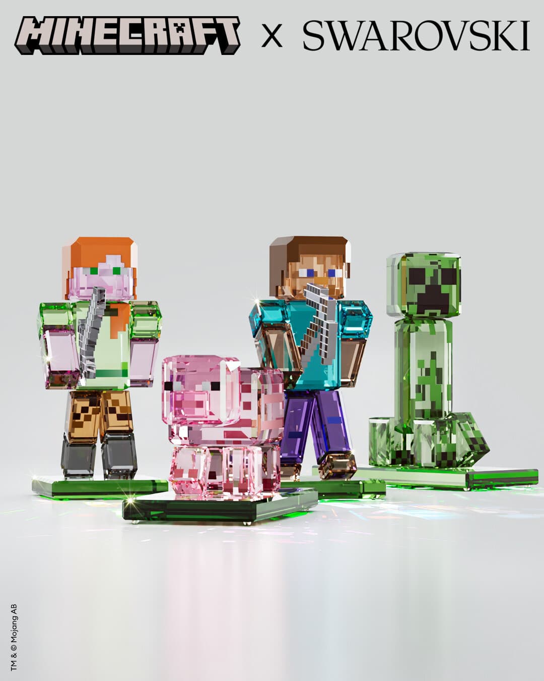 Η συλλογή περιλαμβάνει τέσσερις φιγούρες φτιαγμένες με εξαιρετική ακρίβεια από πλήρη κρύσταλλα, συνδυάζοντας την τέχνη του παιχνιδιού και την μοναδική αισθητική των μπλοκ του Minecraft με την απαράμιλλη τεχνογνωσία της Swarovski.