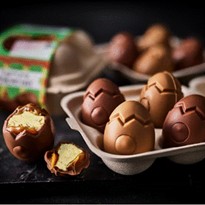 Τα Pistachio Eggs αποτελούν μια απολαυστικά ρευστή πασχαλινή πρόταση. Η συσκευασία περιλαμβάνει δύο αυγά από σοκολάτα γάλακτος και δύο από blond σοκολάτα, με γέμιση αλατισμένης καραμέλας, κρεμώδη πάστα φιστικιού και τραγανό πυρήνα γκοφρέτας. Έρχονται να προστεθούν στη σειρά των δημοφιλών Eggstra Gooey Coffee Eggs και Eggstra Gooey Caramel Eggs.